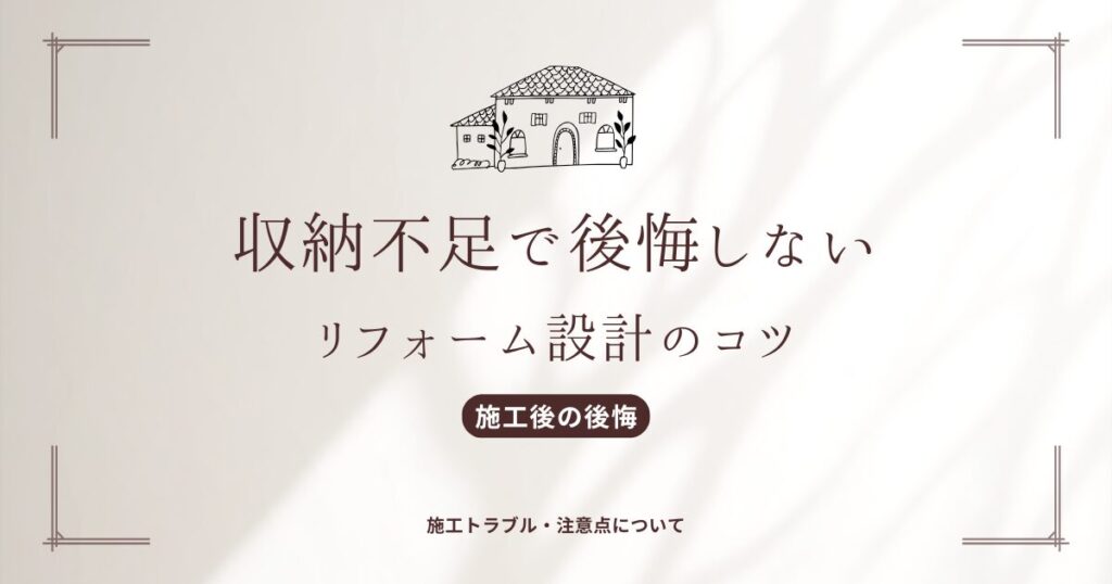 リフォームを検討する人の多くが口にする後悔のひとつが「収納をもっと増やせばよかった…」という声です。実際、リフォーム後の不満ランキングでも「収納不足」は上位に...